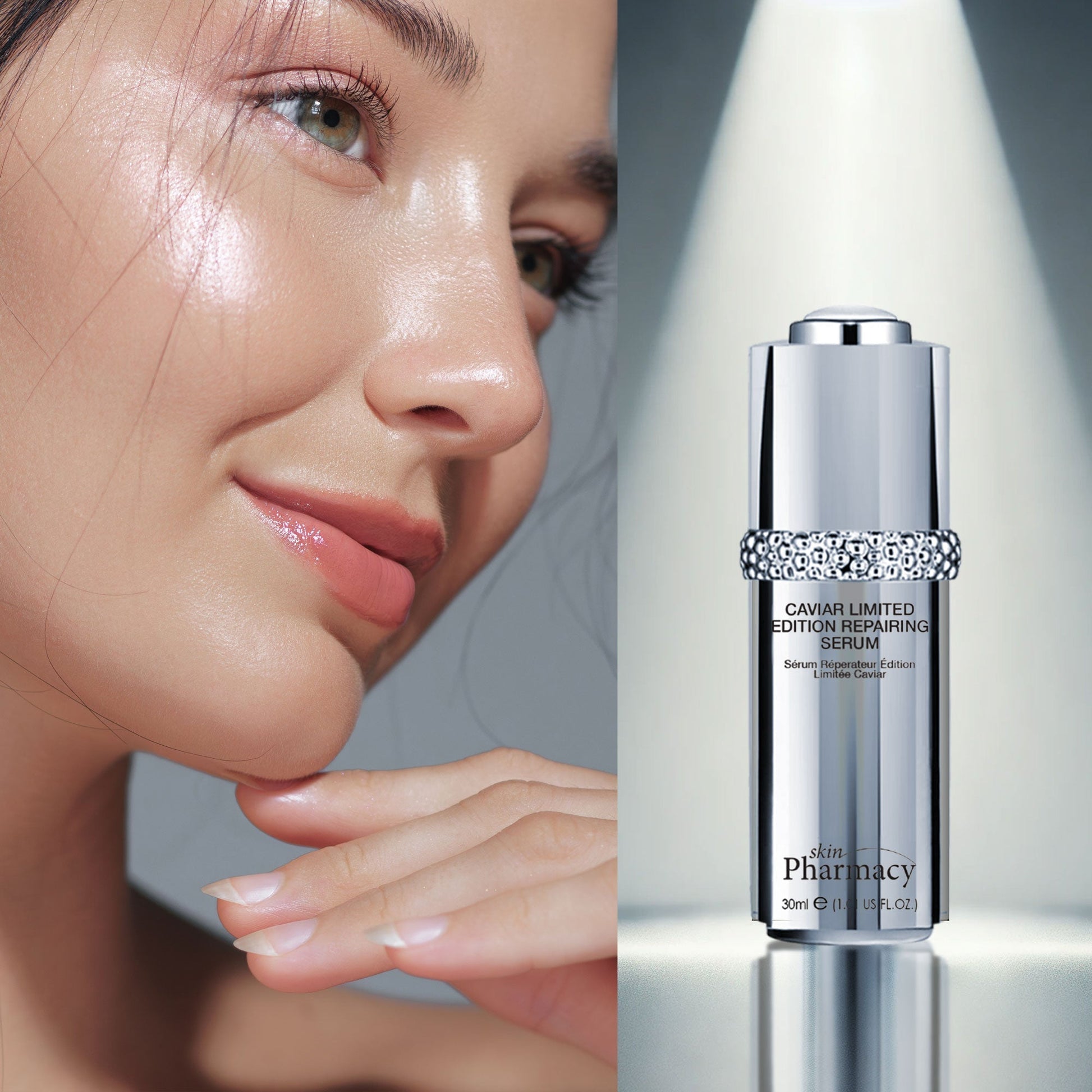 The skinChemists Caviar Limited Edition Repairing Serum is a high-performance treatment serum enriched with precious caviar extract to deliver an intensive dose of repair, nourishment and rejuvenation. Lightweight and fast-absorbing, it penetrates deep into the skin to visibly firm, smooth and restore a luminous, youthful complexion — making it the ultimate luxury addition to any anti-ageing skincare routine.